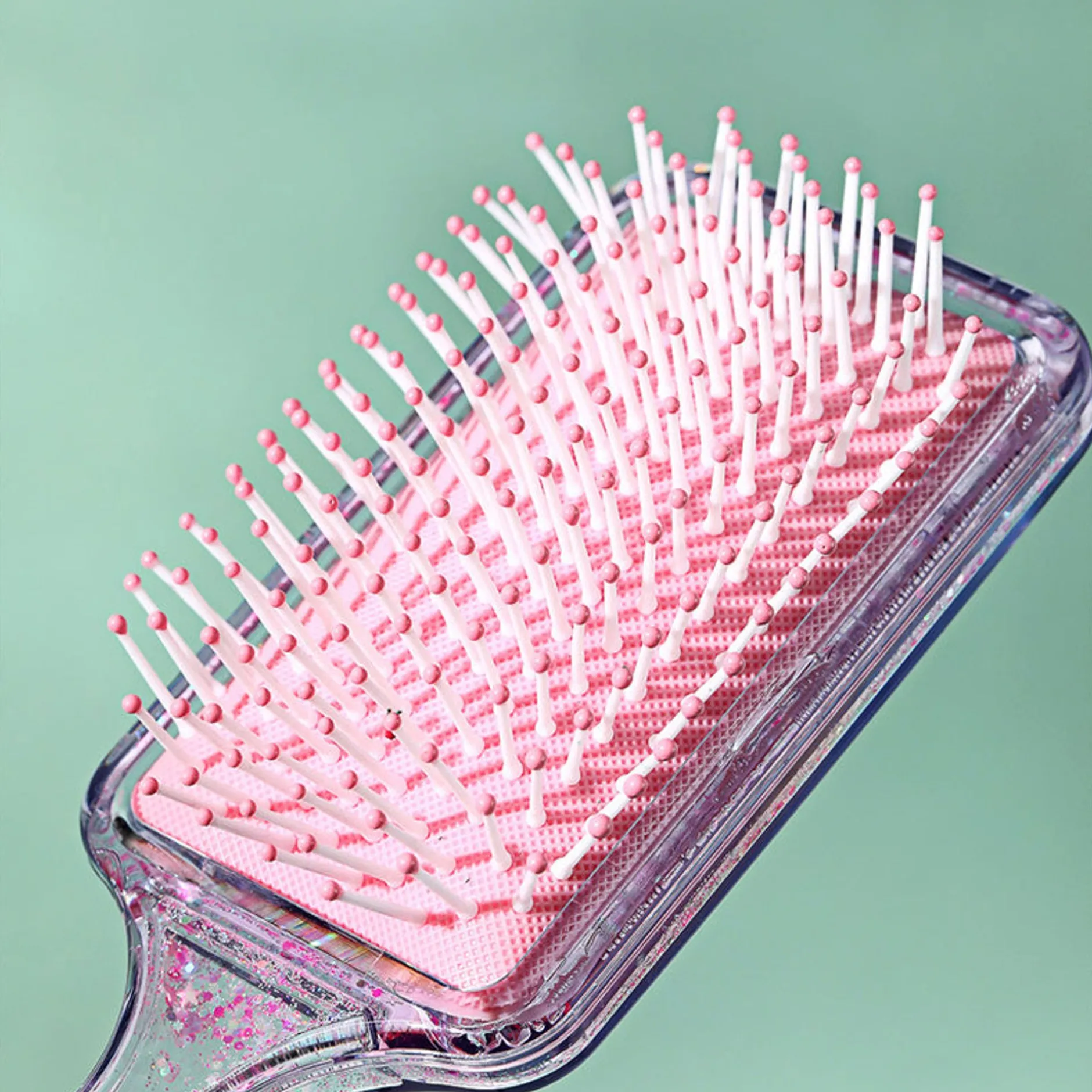 Spazzola Rettangolare Con Cuscino Morbido E Setole Con Micro Pallino All’Estremità.