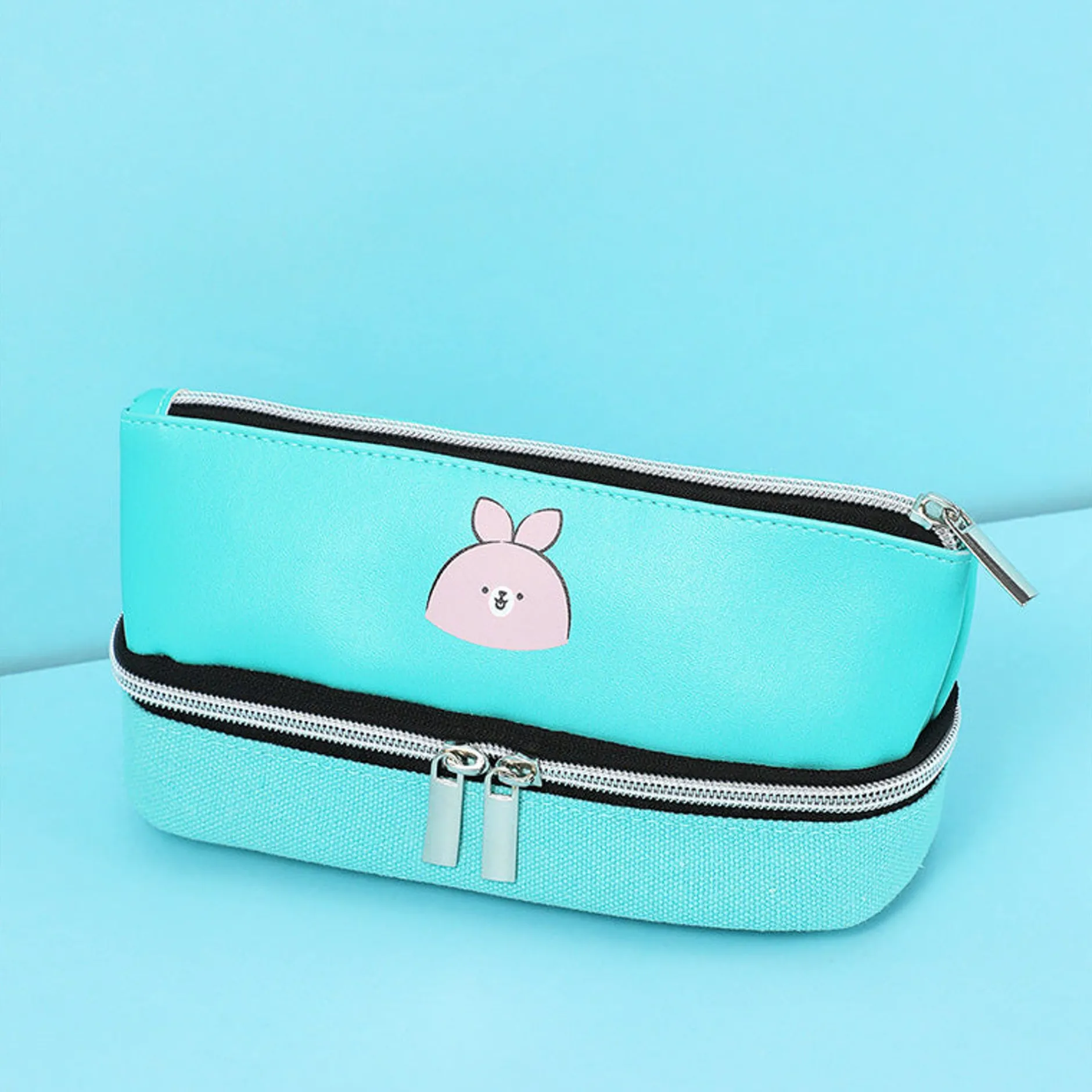 Astuccio Con Doppia Cerniera Del Personaggio Bun Bun Il Coniglietto Rosa Della Minifamily, Colore Vered Acqua.